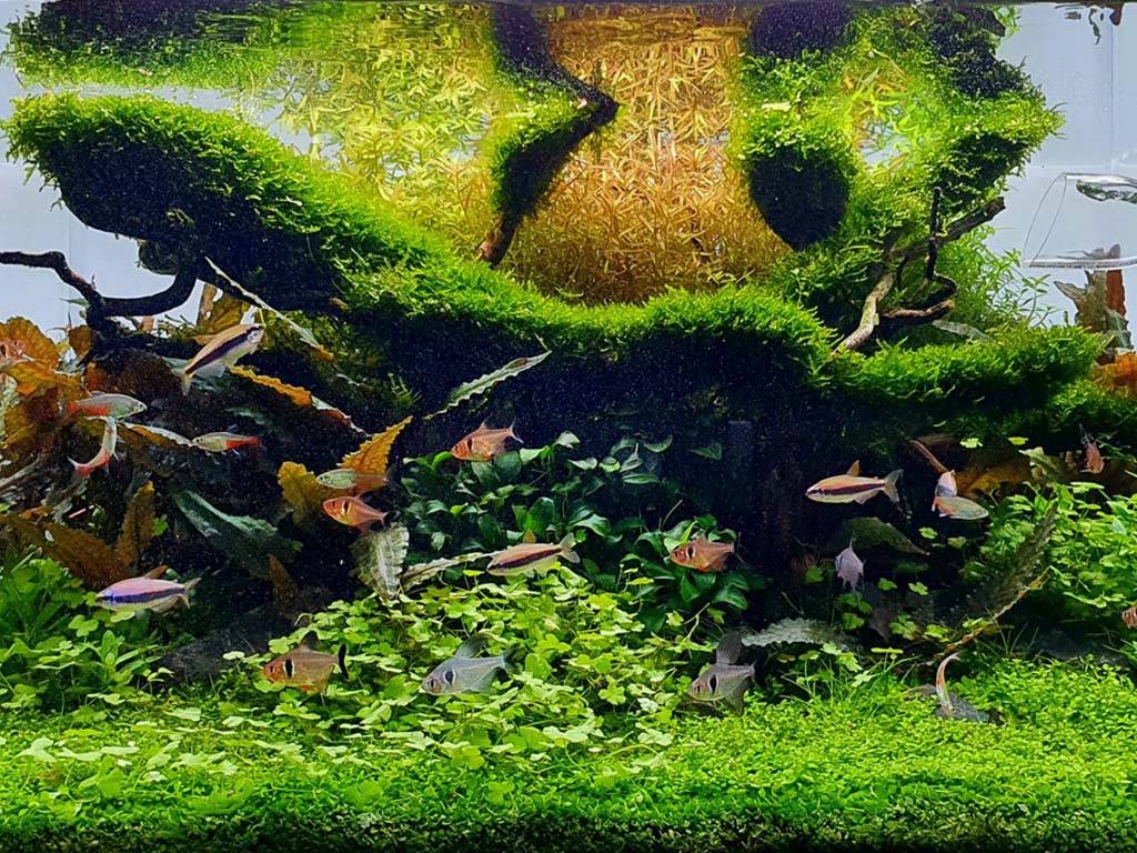 Das untenstehende Layout soll dir als Inspiration dienen, wie deine neuen Wasserpflanzen im Aquarium wirken können. In der folgenden Tabelle findest du außerdem drei weitere passende Wasserpflanzen, die im Layout präsentiert werden.