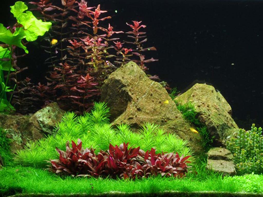 Das untenstehende Layout soll dir als Inspiration dienen, wie deine neuen Wasserpflanzen im Aquarium wirken können. In der folgenden Tabelle findest du außerdem drei weitere passende Wasserpflanzen, die im Layout präsentiert werden.