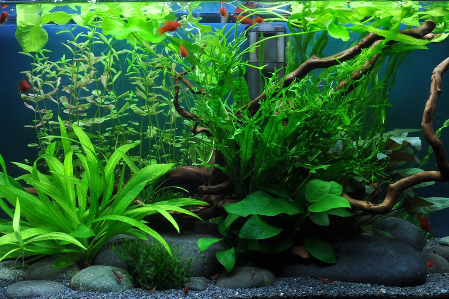 Das untenstehende Layout soll dir als Inspiration dienen, wie deine neuen Wasserpflanzen im Aquarium wirken können. In der folgenden Tabelle findest du außerdem drei weitere passende Wasserpflanzen, die im Layout präsentiert werden.