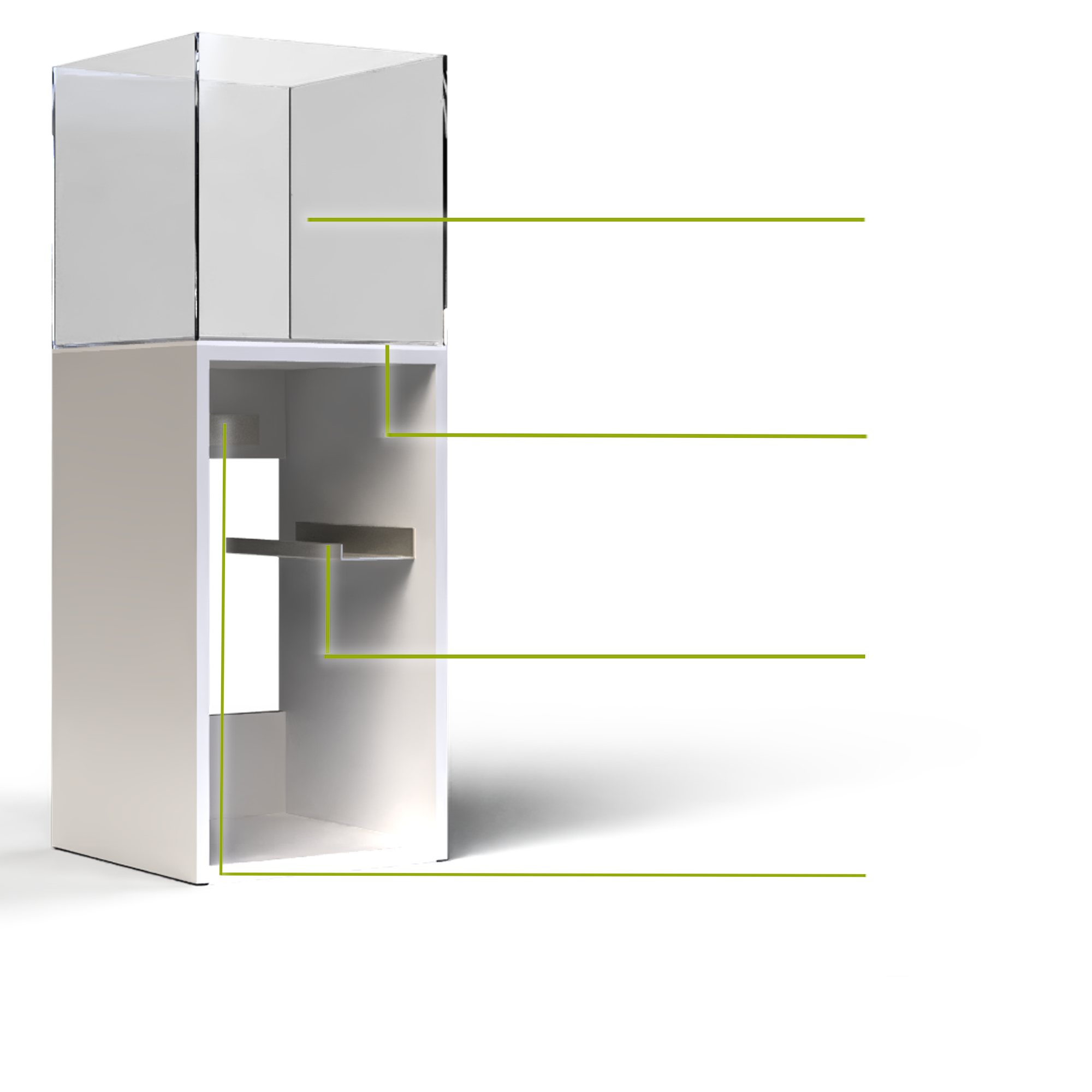Mein Aquariumstand allein ist noch kein komplettes Setup und er kann auch noch optimiert werden. Deshalb biete ich dir die Möglichkeit passendes Zubehör zu ordern. Angefangen mit dem passenden und hochwertigen Aquanature Weissglasbecken über den passenden Tool Holder bis hin zu dezenten Acryltablaren, welche dir Ablageflächen für deinen Krimskrams bieten.