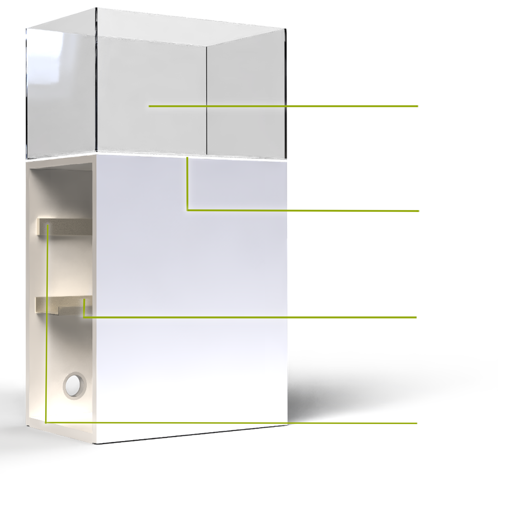 Der Aquanature Tower besticht durch seine solide Konstruktion und unauffällige Eleganz. Er bestehet aus hochwertigen Materialien und ist speziell für die Verwendung in feuchten Umgebungen konzipiert worden. Er ist stabil, strapazierfähig und langlebig, sodass er dein Aquarium viele Jahre sicher trägt und dabei äußerst ansprechend aussieht.