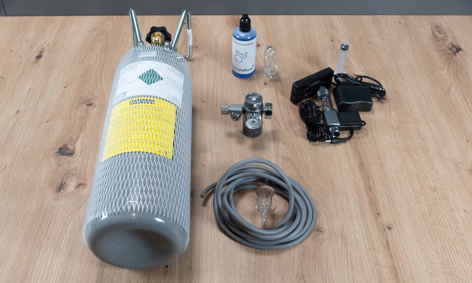 Lieferumfang: | CO2 Druckminderer Profi 21.8 CO2 Blasenzähler inkl. Zeitcontroller CO2 Checker "Drop" CO2 Ausströmer L CO2 Schlauch PVC 4/6 grau CO2 Dauertest Flüssigkeit 100mg/l |