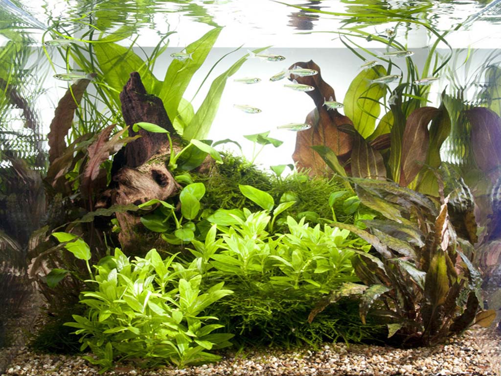 Das untenstehende Layout soll dir als Inspiration dienen, wie deine neuen Wasserpflanzen im Aquarium wirken können. In der folgenden Tabelle findest du außerdem drei weitere passende Wasserpflanzen, die im Layout präsentiert werden.