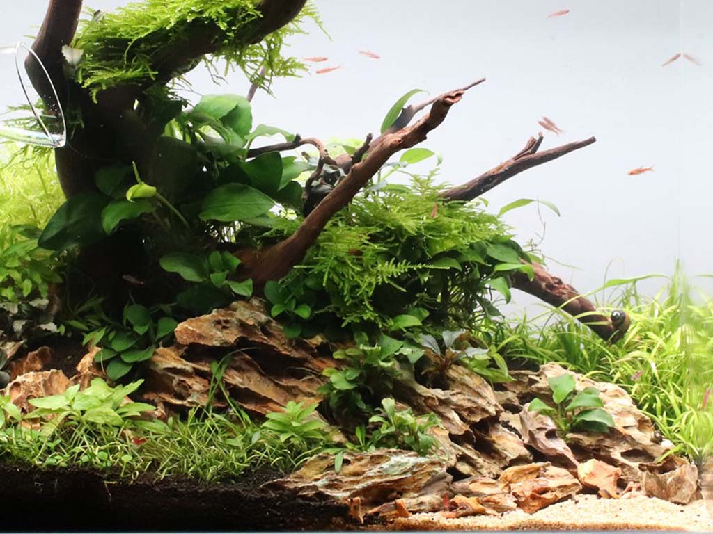 Das untenstehende Layout soll dir als Inspiration dienen, wie deine neuen Wasserpflanzen im Aquarium wirken können. In der folgenden Tabelle findest du außerdem drei weitere passende Wasserpflanzen, die im Layout präsentiert werden.