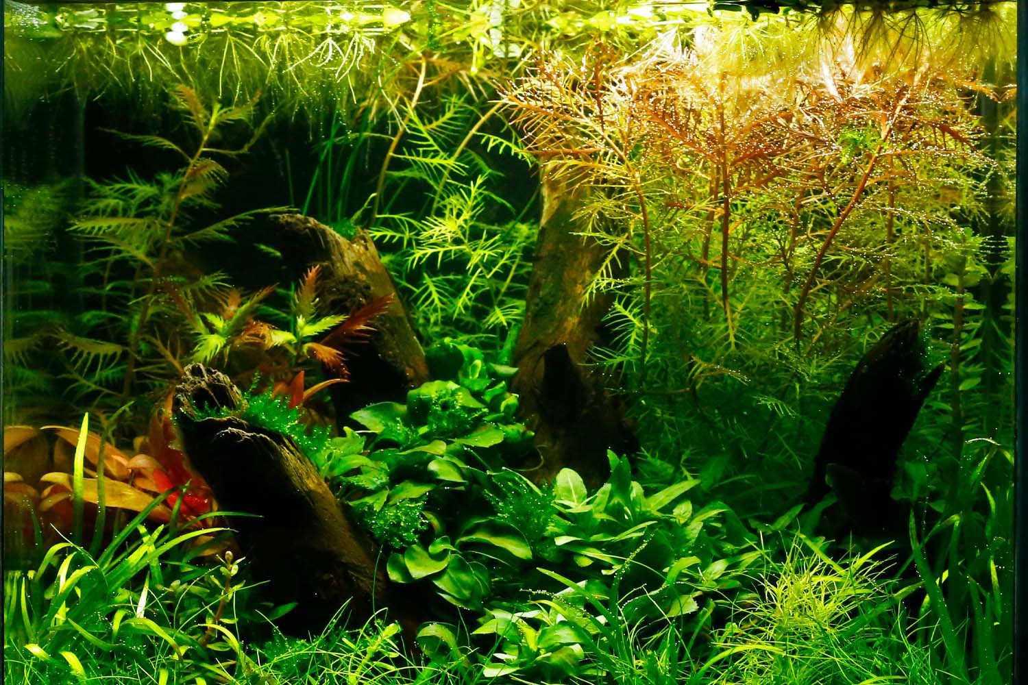 Das untenstehende Layout soll dir als Inspiration dienen, wie deine neuen Wasserpflanzen im Aquarium wirken können. In der folgenden Tabelle findest du außerdem drei weitere passende Wasserpflanzen, die im Layout präsentiert werden.