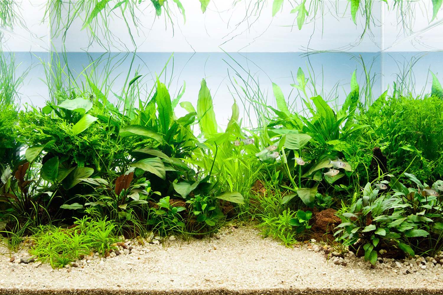 Das untenstehende Layout soll dir als Inspiration dienen, wie deine neuen Wasserpflanzen im Aquarium wirken können. In der folgenden Tabelle findest du außerdem drei weitere passende Wasserpflanzen, die im Layout präsentiert werden.