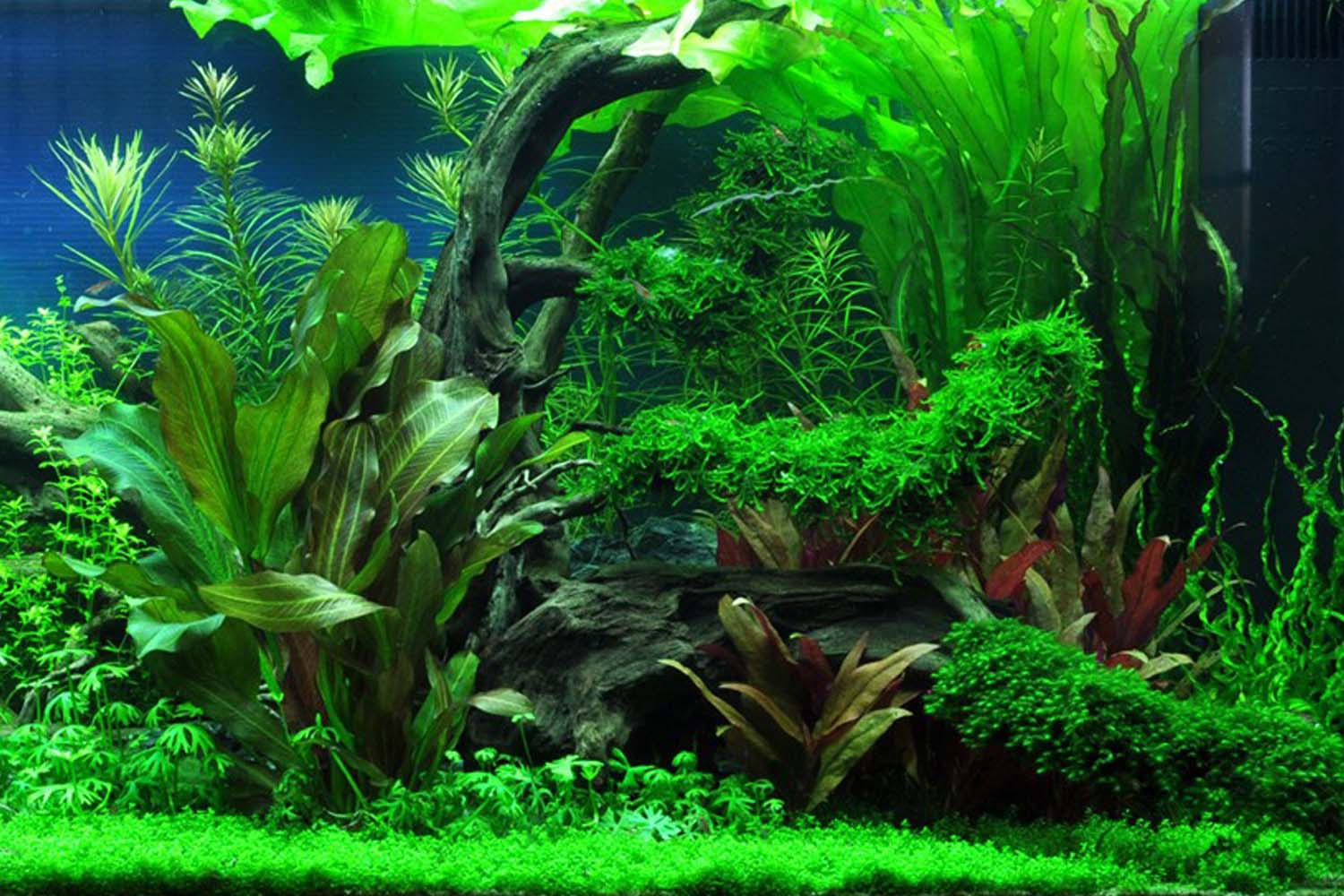 Das untenstehende Layout soll dir als Inspiration dienen, wie deine neuen Wasserpflanzen im Aquarium wirken können. In der folgenden Tabelle findest du außerdem drei weitere passende Wasserpflanzen, die im Layout präsentiert werden.