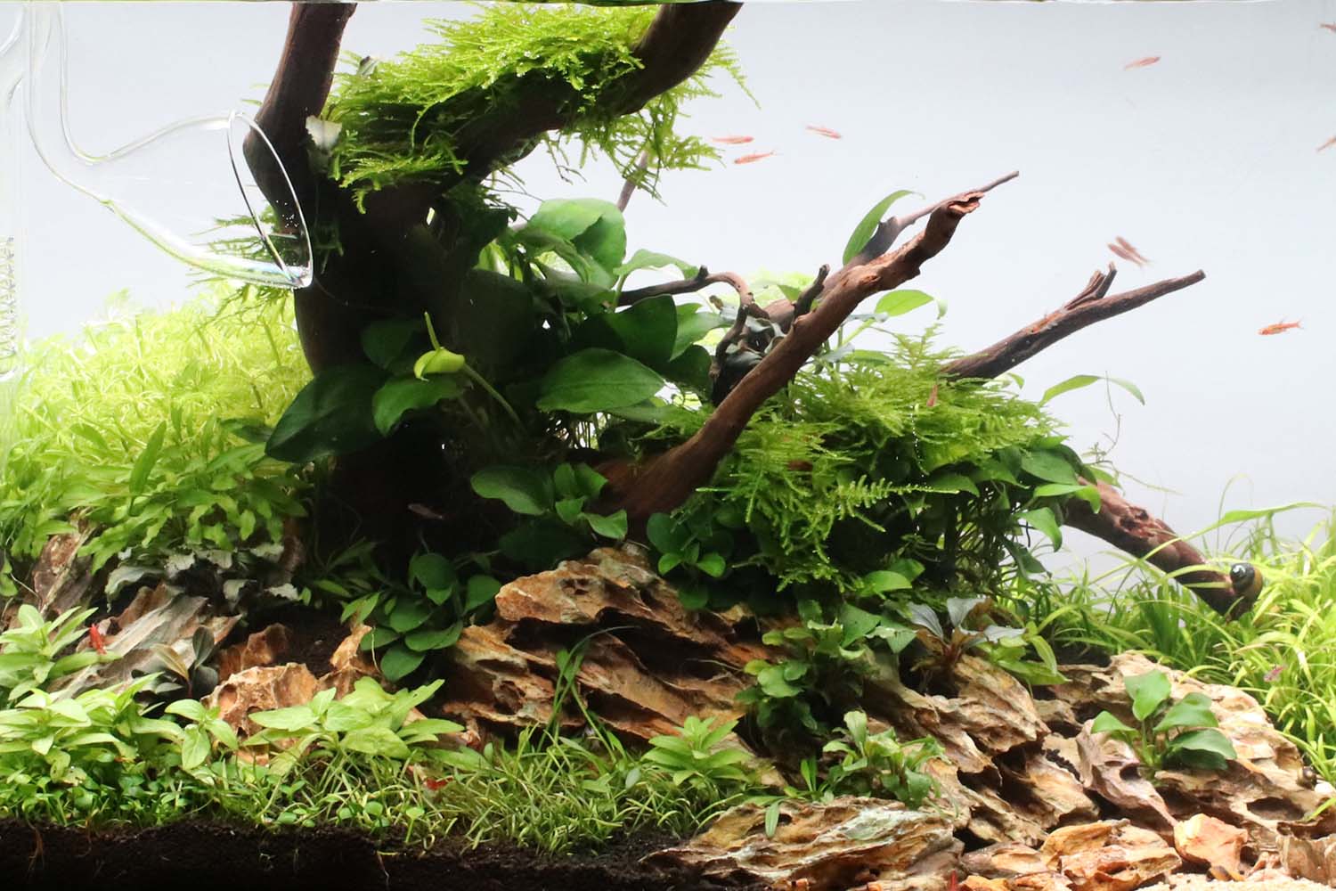 Das untenstehende Layout soll dir als Inspiration dienen, wie deine neuen Wasserpflanzen im Aquarium wirken können. In der folgenden Tabelle findest du außerdem drei weitere passende Wasserpflanzen, die im Layout präsentiert werden.