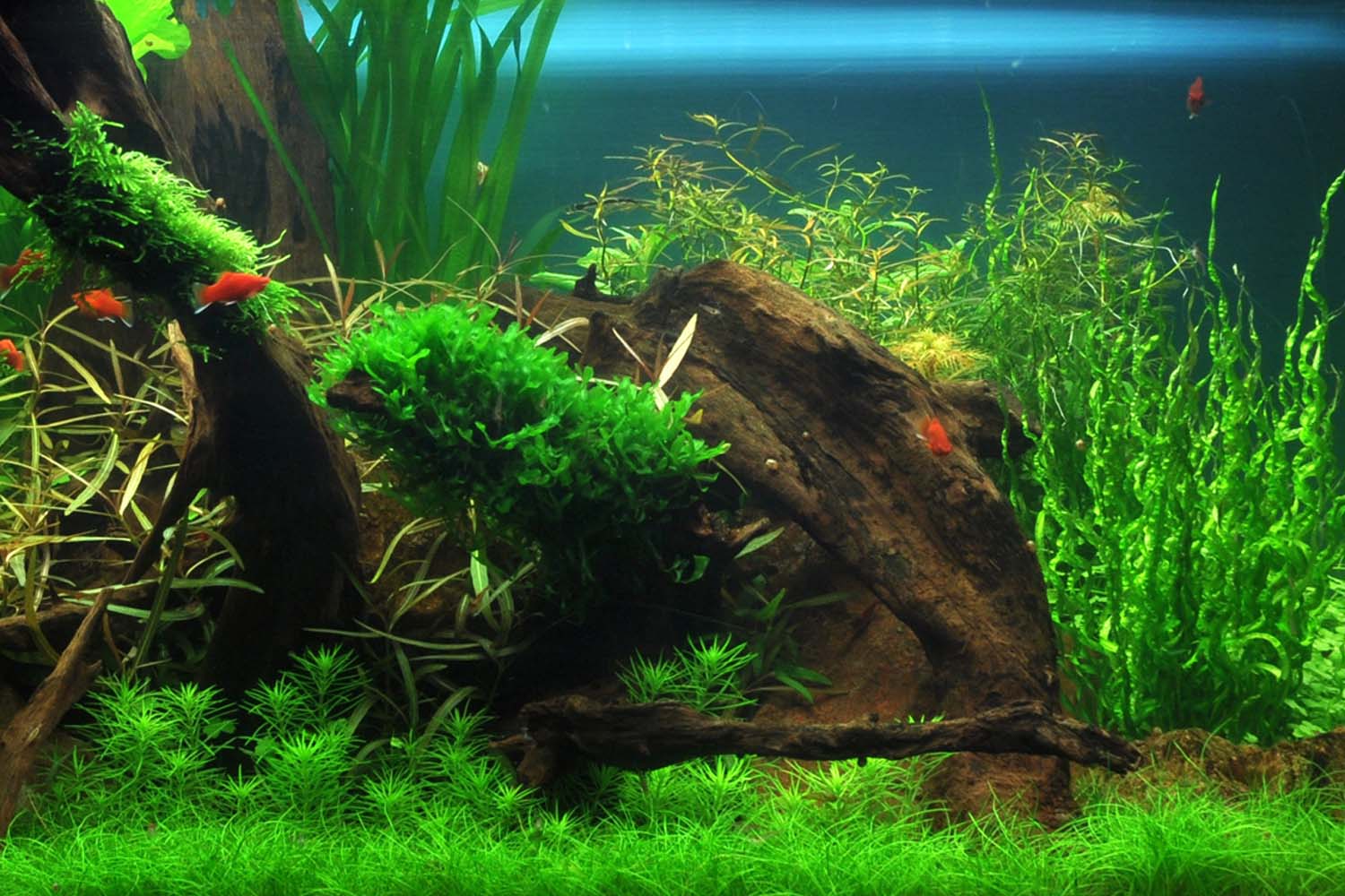 Das untenstehende Layout soll dir als Inspiration dienen, wie deine neuen Wasserpflanzen im Aquarium wirken können. In der folgenden Tabelle findest du außerdem drei weitere passende Wasserpflanzen, die im Layout präsentiert werden.
