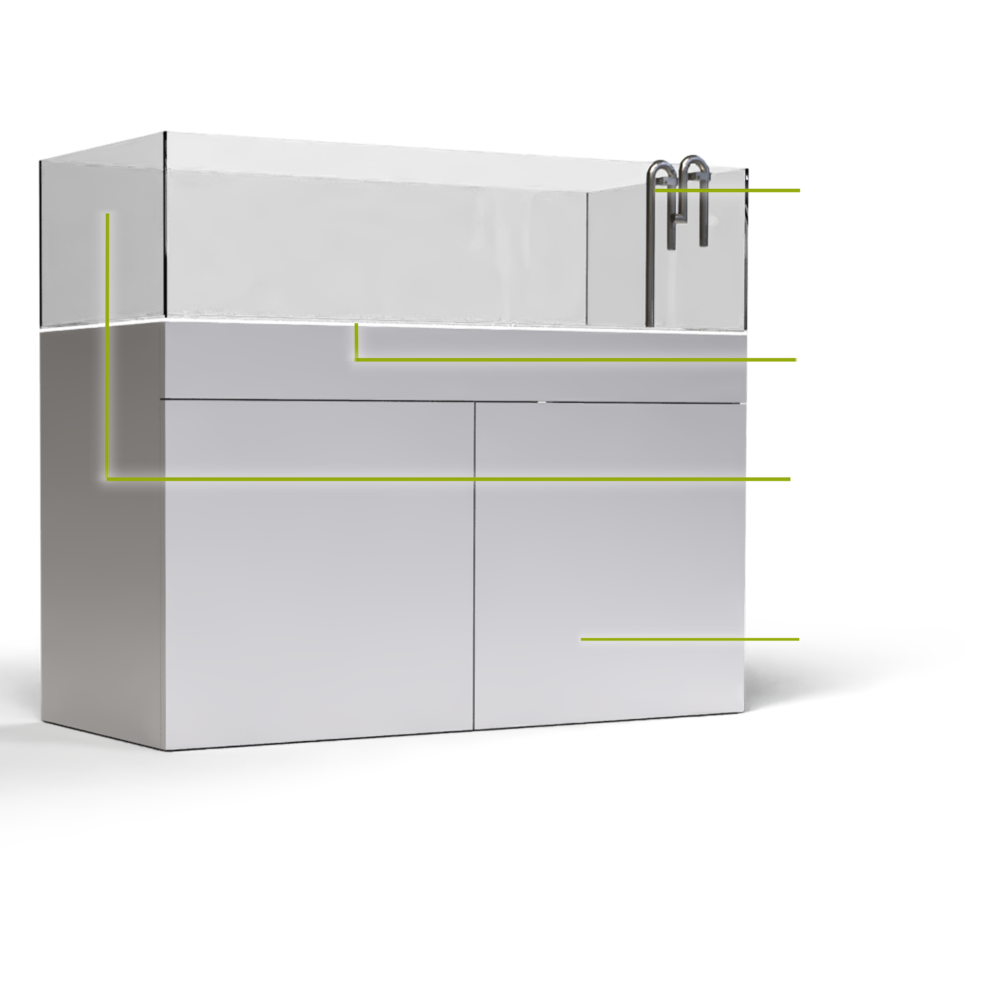 Ein gutes Aquarium allein macht noch kein schönes Setup aus. Deshalb biete ich dir die Möglichkeit passendes Zubehör zu ordern. Angefangen mit dem passenden und hochwertigen Aquanature Möbel über die perfekt folierte Rückwand bis hin zum passenden Edelstahl In-/Outflow Set welches einfach stylish aussieht.