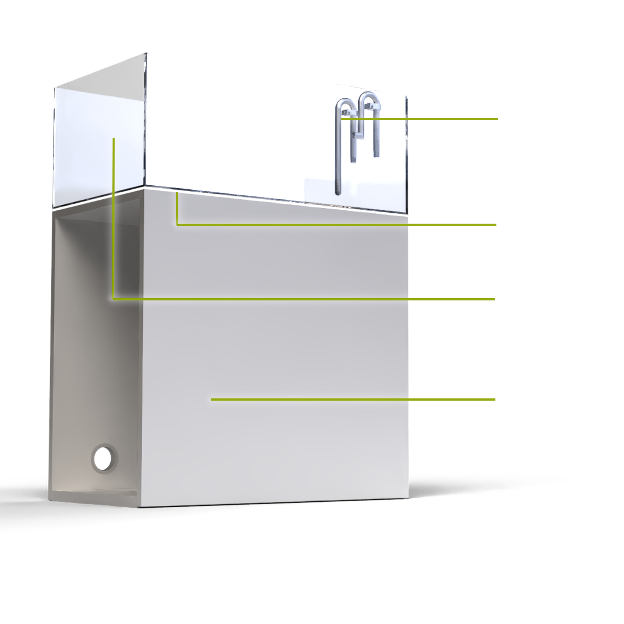 Ein gutes Aquarium allein macht noch kein schönes Setup aus. Deshalb biete ich dir die Möglichkeit passendes Zubehör zu ordern. Angefangen mit dem passenden und hochwertigen Aquanature Möbel über die perfekt folierte Rückwand bis hin zum passenden Edelstahl In-/Outflow Set welches einfach stylish aussieht.