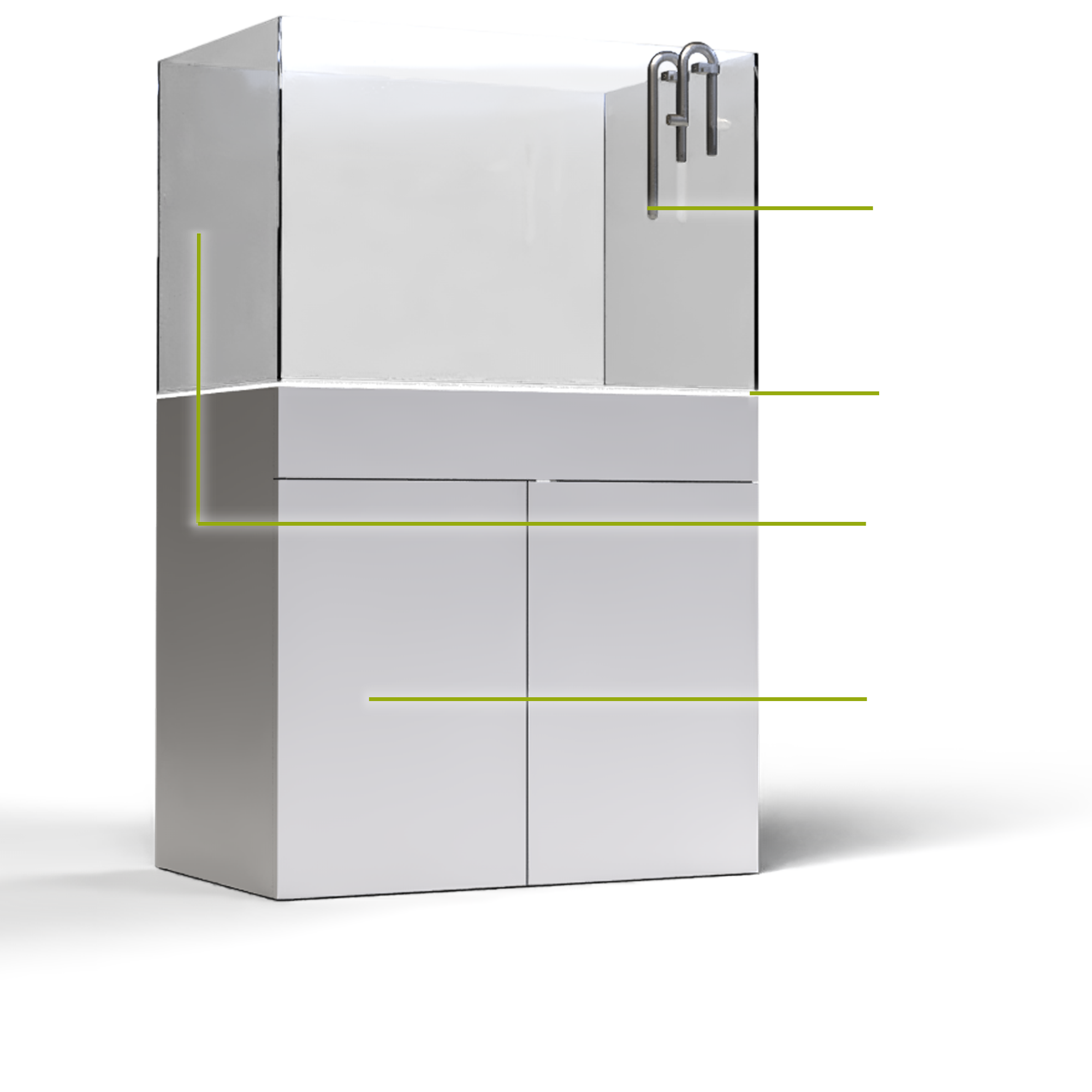 Ein gutes Aquarium allein macht noch kein schönes Setup aus. Deshalb biete ich dir die Möglichkeit passendes Zubehör zu ordern. Angefangen mit dem passenden und hochwertigen Aquanature Möbel über die perfekt folierte Rückwand bis hin zum passenden Edelstahl In-/Outflow Set welches einfach stylish aussieht.