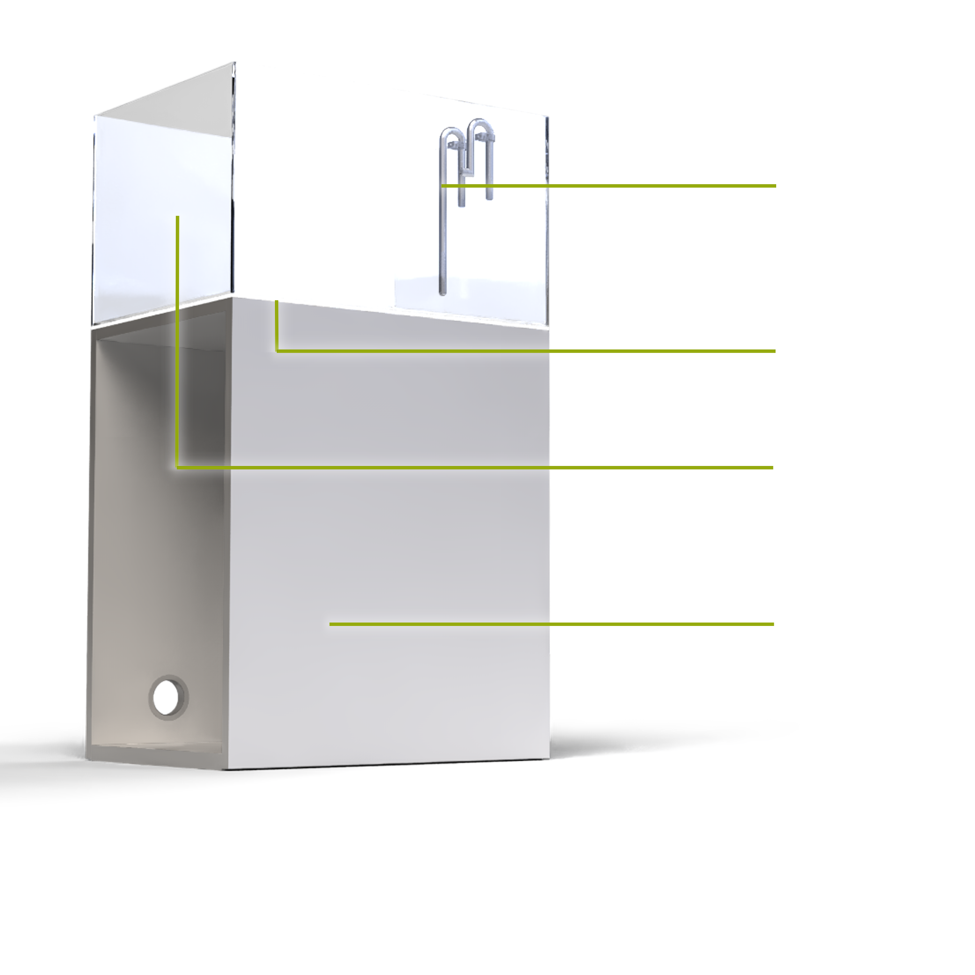 Ein gutes Aquarium allein macht noch kein schönes Setup aus. Deshalb biete ich dir die Möglichkeit passendes Zubehör zu ordern. Angefangen mit dem passenden und hochwertigen Aquanature Möbel über die perfekt folierte Rückwand bis hin zum passenden Edelstahl In-/Outflow Set welches einfach stylish aussieht.
